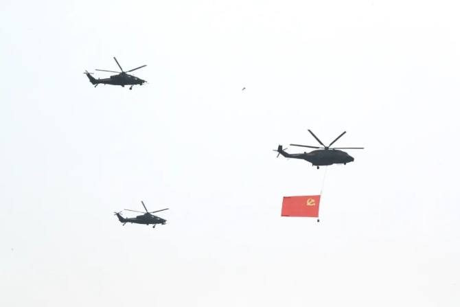直升機(jī)懸掛中國共產(chǎn)黨黨旗