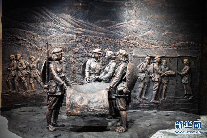 長征途經(jīng)湖南汝城縣沙洲村,3名女紅軍借宿徐解秀老人家中,臨走時(shí),把自己僅有的一床被子剪下一半給老人留下了。老人說,共產(chǎn)黨就是自己有一條被子,也要剪下半條給老百姓的人。