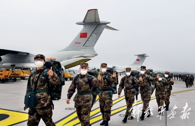 2020年2月2日,空軍出動8架大型運(yùn)輸機(jī),緊急空運(yùn)軍隊(duì)支援湖北醫(yī)療隊(duì)隊(duì)員抵達(dá)武漢天河機(jī)場。