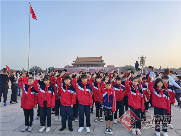 那是她永生難忘的記憶——一個月前的“六一”國際兒童節(jié),當太陽從地平線上冉冉升起的那一刻,隨著軍樂隊的演奏,潘天秀和潘義梅、龍春燕等小伙伴們一起,深情凝視著天安門廣場上徐徐上升的五星紅旗,莊嚴地行了一個少先隊禮,并在天安門廣場齊聲高唱《中華人民共和國國歌》。