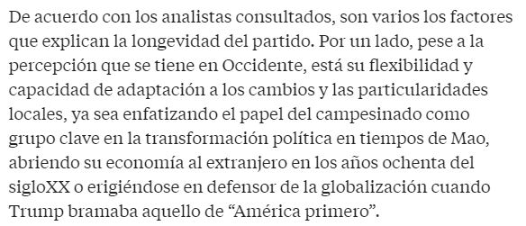 “是什么讓中國共產(chǎn)黨如此有韌性,尤其是在中國社會、經(jīng)濟(jì)和政治取得空前進(jìn)步的這段時期?”文章認(rèn)為,除了發(fā)展和經(jīng)濟(jì)數(shù)據(jù)外,解讀中國的某些文化因素或許會有助于理解這種現(xiàn)象。