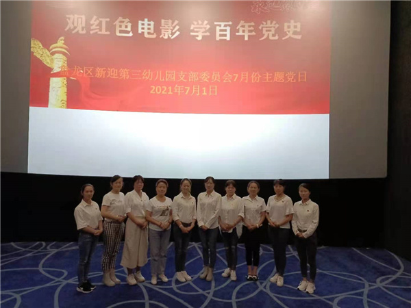 為了回顧中國共產黨的發(fā)展歷程,感受中國共產黨的革命智慧,當天下午全體教職工還共同觀看愛國主義題材影片《1921》,進一步堅定聽黨話、跟黨走的信念。除此之外,幼兒園對先進黨員倪云花、劉云紅進行表揚,號召全體黨員向先進黨員同志看齊;為7月入黨的黨員集體過“政治生日”,贈政治生日寄語;向退休老黨員贈黨史學習書籍,期望老教師晚年生活與書為伴。