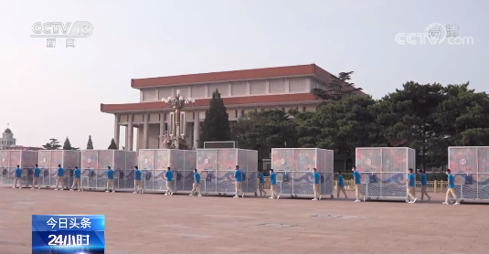 七一當(dāng)天,100只球籠頂蓋同時(shí)打開,天安門廣場(chǎng)南側(cè)有10萬只氣球騰空而起,色彩斑斕,形成一條彩色長(zhǎng)龍。