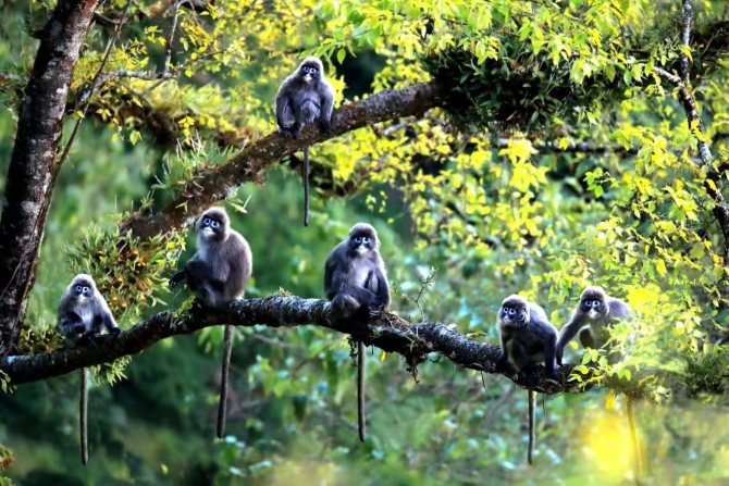 保護區(qū)現(xiàn)有鳥類716種,占全國的一半,這里是中國唯一能觀測到五種犀鳥的地方,是中國菲氏葉猴最大種群棲息地,也是人類最近的遠(yuǎn)房親戚—數(shù)量不足100只的天行長臂猿生活的樂土。
