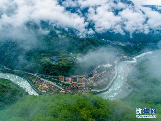 云霧繚繞的云南貢山獨(dú)龍族怒族自治縣獨(dú)龍江鄉(xiāng)(2019年4月16日攝,無人機(jī)照片)。新華社記者 江文耀 攝
