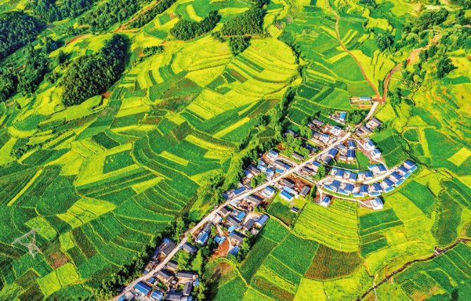 四川省涼山彝族自治州布拖縣把特色種植產(chǎn)業(yè)作為經(jīng)濟(jì)發(fā)展的重要內(nèi)容,促進(jìn)居民增收,助力鄉(xiāng)村振興,構(gòu)成了一幅幅美麗山鄉(xiāng)新畫卷。圖為被濃綠掩映的布拖縣村落。 中國(guó)文聯(lián)供圖 鄧邦敏/攝