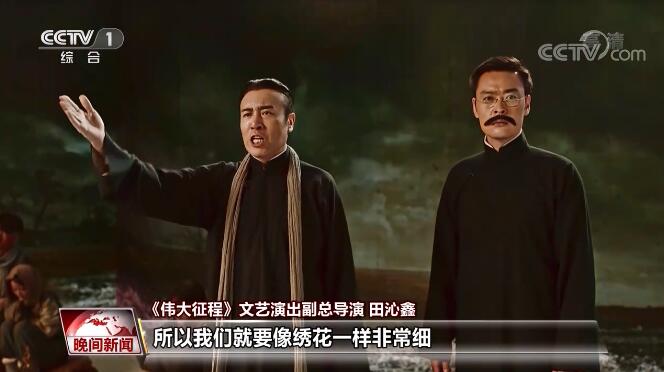 《偉大征程》文藝演出副總導演 田沁鑫:這么大的屏上,畫面里面的內(nèi)容不能有任何瑕疵,我們要像繡花一樣非常細。用即時拍攝的這種方式,也是晚會形式所能接受的方式,我們最好的方法就是即時拍攝、即時現(xiàn)場剪輯。