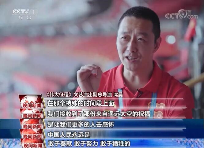 《偉大征程》文藝演出副總導演 沈晨:在那個特殊的時間段上面,我們接收到了來自遙遠太空的祝福,是讓更多的人去感懷,中國人民永遠是敢于奉獻、敢于努力、敢于犧牲的。