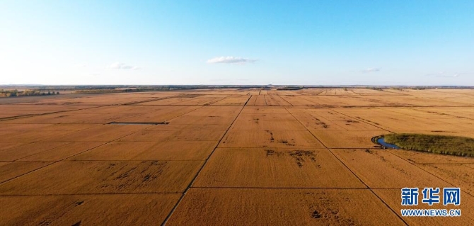 這是黑龍江農(nóng)墾建三江管理局七星農(nóng)場稻田(2018年9月26日攝,無人機照片)。新華社發(fā)(顧景坤 攝)