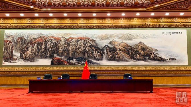 北京人民大會堂,視頻峰會開始前的會場。(總臺央視記者范一鳴拍攝)