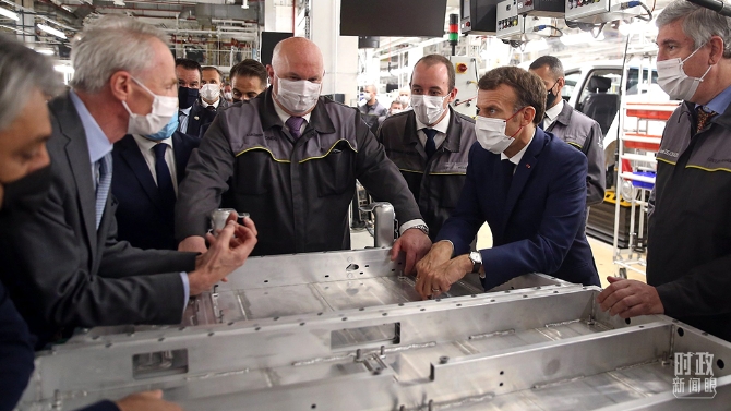 △2021年6月28日,馬克龍(右二)在參觀法國北部城市杜埃附近的工廠時,對中國企業(yè)將在這里投資建設(shè)電池工廠表示歡迎。(圖/視覺中國)