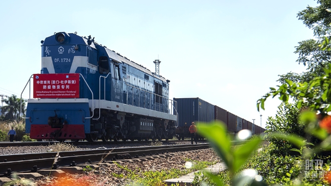 △2021年4月21日,一列滿載防疫物資的中歐班列,由廈門海滄站發(fā)往德國杜伊斯堡。(圖/視覺中國)