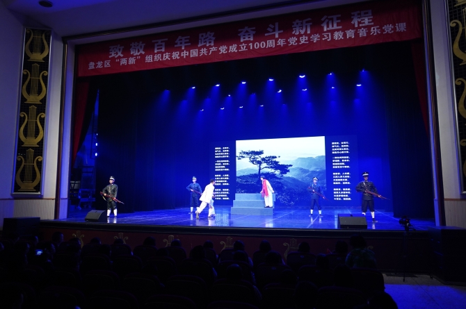 此次活動(dòng)由盤龍區(qū)委組織部主辦,區(qū)委“兩新”組織工委、區(qū)文化和旅游局承辦,區(qū)總工會(huì)、團(tuán)區(qū)委、區(qū)婦聯(lián),區(qū)文化館協(xié)辦。演出以“情景表演+紅色音樂”形式呈現(xiàn),共分為“初心啟航”“復(fù)興之路”“紅色傳承”三大篇章三個(gè)篇章,將音樂載體融入黨課教育,綜合應(yīng)用多種藝術(shù)手段,生動(dòng)再現(xiàn)黨的奮斗歷程,歌頌黨的輝煌成就,展現(xiàn)“兩新”組織主動(dòng)融入城市基層黨建,在脫貧攻堅(jiān)、疫情防控等中心工作的作用發(fā)揮,進(jìn)一步引導(dǎo)“兩新”組織黨員學(xué)黨史、頌黨恩、跟黨走,把感恩黨、感恩新時(shí)代的真摯情感化為奮斗建功的實(shí)際行動(dòng)。