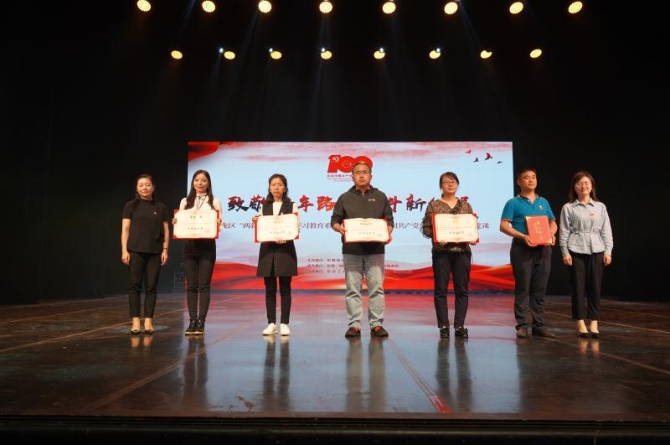 在第三篇章“紅色傳承”中,盤龍區(qū)委“兩新”組織工委副書記以唱支rap給黨聽的形式演唱《紅色》,展現(xiàn)了黨的十八大以來,“兩新”組織積極融入城市基層黨建,擴(kuò)大社會(huì)就業(yè)、繁榮城鄉(xiāng)經(jīng)濟(jì),在脫貧攻堅(jiān)、新冠疫情防控等中心工作中的重要作用!原創(chuàng)昆明曲劇舞蹈《龍泉探梅》致敬七一勛章獲得者—張桂梅,用知識(shí)點(diǎn)亮山區(qū)女孩兒的求學(xué)之路,唱響了新時(shí)代共產(chǎn)黨人的奮斗之歌!合唱《美麗新時(shí)代》,描繪與改革開放新時(shí)代同行,從富起來到強(qiáng)起來的彩云之南,感召盤龍兒女自信前行!演出結(jié)束,在場領(lǐng)導(dǎo)為優(yōu)秀表演獎(jiǎng)獲獎(jiǎng)單位、優(yōu)秀組織獎(jiǎng)獲獎(jiǎng)單位頒獎(jiǎng)。