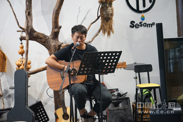民謠小院里,歌手在自彈自唱。(中國經(jīng)濟網(wǎng)記者 于鶴章/攝)
