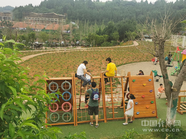 家長和孩子在田邊玩耍。(中國經(jīng)濟網(wǎng)記者 鄧浩/攝)