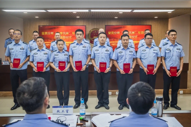 昆明信息港訊 記者合宇聰 日前,昆明市公安局呈貢分局召開隊(duì)伍教育整頓暨重點(diǎn)工作推進(jìn)會(huì),對近期在“夏季風(fēng)暴”嚴(yán)打整治專項(xiàng)行動(dòng)中涌現(xiàn)出的先進(jìn)集體、先進(jìn)個(gè)人進(jìn)行表彰。
