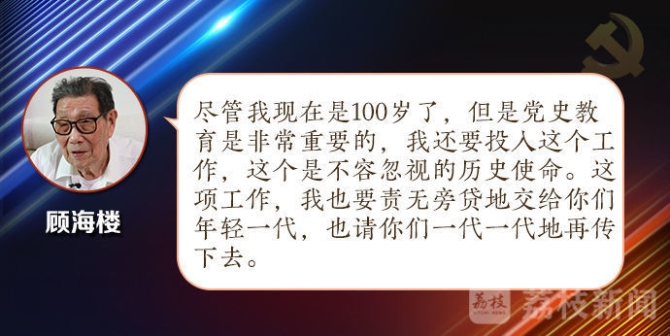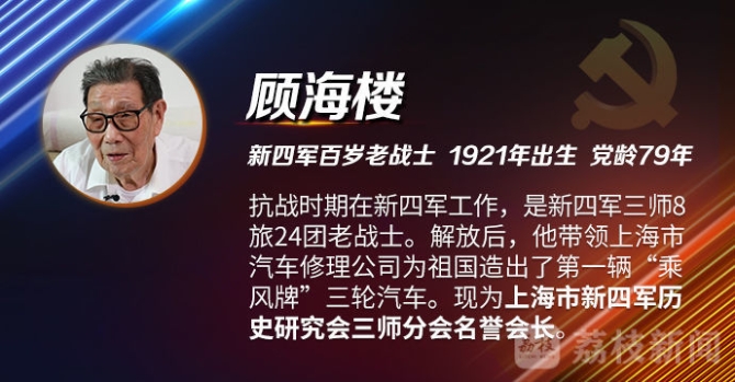 這群老戰(zhàn)士中,有一位與黨同齡,經(jīng)歷過戰(zhàn)火紛飛的年代,現(xiàn)為上海市新四軍歷史研究會三師分會名譽會長,他就是顧海樓。
