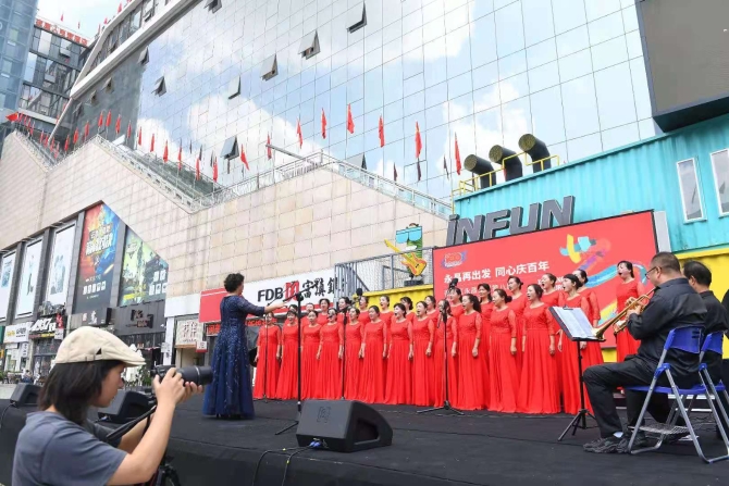 伴隨著民鼓合奏的響起,開(kāi)幕式在歌曲《把一切獻(xiàn)給黨》中正式拉開(kāi)序幕。在激昂喜慶的音樂(lè)聲中,演員們載歌載舞,傳遞出永昌街道不忘初心、牢記使命,聽(tīng)黨話(huà)、感黨恩、跟黨走的真摯情感。隨后,《游擊隊(duì)之歌》《唱支山歌給黨聽(tīng)》《揚(yáng)鞭催馬運(yùn)糧忙》《紅旗飄飄》《在燦爛陽(yáng)光下》等一個(gè)個(gè)文藝節(jié)目精彩紛呈,讓現(xiàn)場(chǎng)觀眾久久沉浸其中。最后,開(kāi)幕式在全體演職人員和觀眾合唱的《沒(méi)有共產(chǎn)黨就沒(méi)有新中國(guó)》歌聲中圓滿(mǎn)落幕。