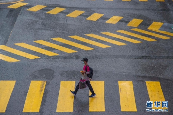 7月8日,一名送餐員從馬來西亞吉隆坡的街上走過。新華社發(fā)(張紋綜 攝)