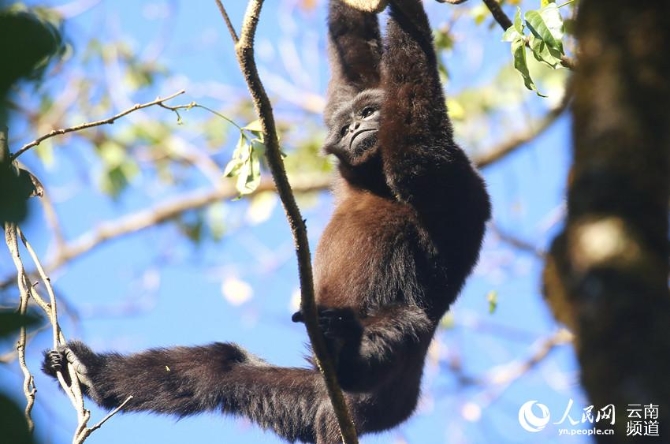 有這樣一個(gè)種群,叫天行長(zhǎng)臂猿——首個(gè)被中國(guó)科學(xué)家命名的猿類物種,數(shù)量不足150只,不足大熊貓數(shù)量的十分之一,分布在云南高黎貢山國(guó)家級(jí)自然保護(hù)區(qū)和德宏州盈江縣的部分原始森林里,被世界自然保護(hù)聯(lián)盟(IUCN)確定為“瀕?!?。