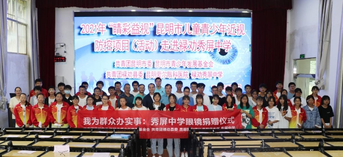 為呵護好孩子的眼健康,讓他們擁有一個光明的未來,近日,由共青團昆明市委、昆明市青少年發(fā)展基5會、共青團祿勸縣委、昆明愛爾眼科醫(yī)院共同舉辦的“2021年‘睛彩益視’昆明市兒童青少年近視防控活動”走進(jìn)祿勸秀屏中學(xué),來自昆明愛爾眼科醫(yī)院的眼健康公益科普團隊還為學(xué)校前期篩查出來患有近視且需要配鏡的55名學(xué)生送上了公益配制的眼鏡。