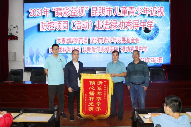 為表示感謝,秀屏中學(xué)還特地制作了一面寫有“情系莘莘學(xué)子,傾心播種光明”的錦旗送給了昆明愛爾眼科醫(yī)院眼健康公益科普團隊。