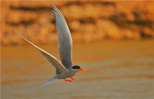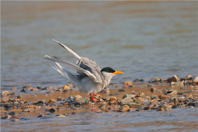 河燕鷗為中型水禽,體長(zhǎng)37-43厘米,常單獨(dú)或成2—3只的小群活動(dòng),頻繁地在江河的上空飛翔,很少停息。主要以小型魚類為食,也吃蛙、蝌蚪、甲殼類和水生昆蟲。一直跟蹤拍攝河燕鷗的自然生態(tài)攝影師孫曉宏介紹,目前我國(guó)只在云南德宏大盈江流域有分布。根據(jù)近四年的觀查記錄,每年到大盈江筑巢繁殖的河燕鷗數(shù)量在5至7只。