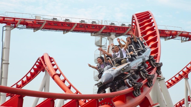最新型彈射式過山車項(xiàng)目《鷹擊長(zhǎng)空》以航母為造型設(shè)計(jì),是國(guó)際頂級(jí)過山車廠商為方特獨(dú)家打造。游客們?cè)跁r(shí)速92公里的彈射過程和“零重力翻轉(zhuǎn)”“360°翻轉(zhuǎn)”等16種高難度動(dòng)作中,真實(shí)感受航母艦載機(jī)飛行員的飛行體驗(yàn)。