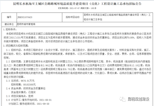 近日,昆明市城市管理局發(fā)布《昆明長水機(jī)場至主城區(qū)公路路域環(huán)境品質(zhì)提升建設(shè)項目(亮化)工程設(shè)計施工總承包招標(biāo)公告》《昆明長水機(jī)場至主城區(qū)公路路域環(huán)境品質(zhì)提升建設(shè)項目(綠化)工程設(shè)計施工總承包招標(biāo)公告》,計劃對昆明長水機(jī)場至主城區(qū)公路進(jìn)行亮化和綠化提升改造。