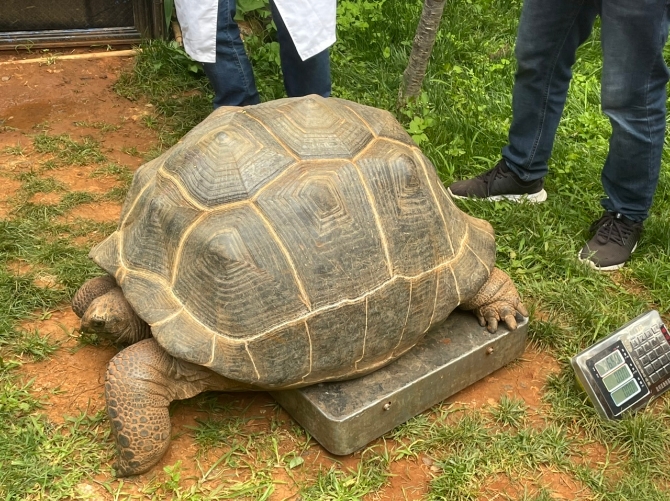 昆明信息港訊 記者段佳琪 前腿圍34厘米、腰圍174厘米、背甲長(zhǎng)105厘米……7月13日,在云南野生動(dòng)物園,工作人員正在為兩只“亞達(dá)伯拉象龜”體檢,現(xiàn)場(chǎng)主要給象龜進(jìn)行了稱重、口腔檢查、糞便檢查等,為動(dòng)物們的健康生活保駕護(hù)航。