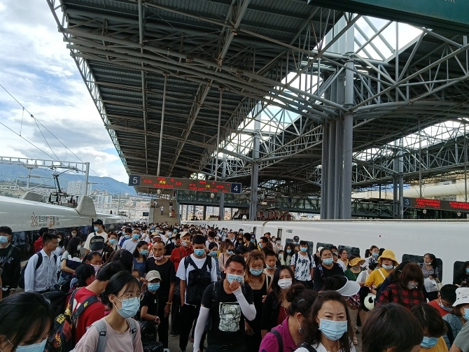 鐵路部門提醒,暑運期間客流較大,旅客請?zhí)崆坝喥?,具體列車開行情況請關(guān)注鐵路12306網(wǎng)站及12306手機APP,乘車時盡量提前到車站測溫掃碼、安檢候車,以避免耽誤出行。