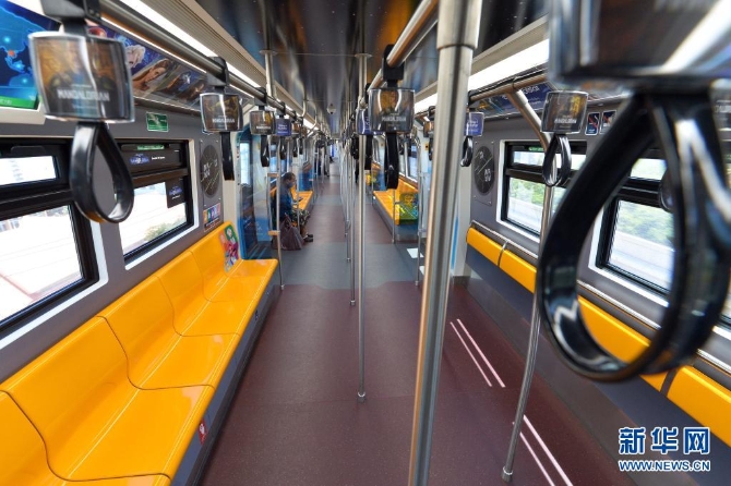 這是7月12日在泰國曼谷拍攝的乘客稀少的輕軌車廂。新華社發(fā)(拉亨攝)