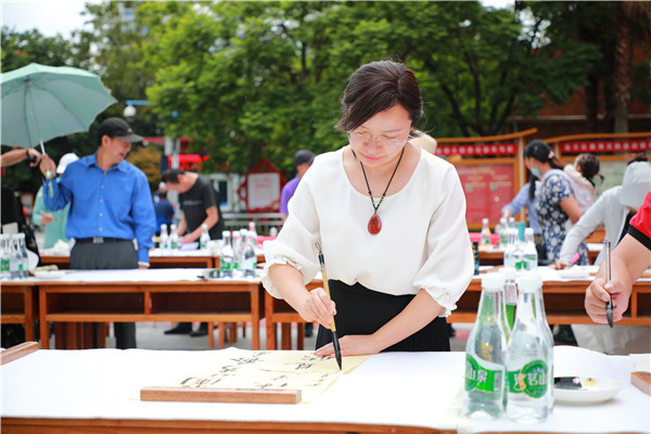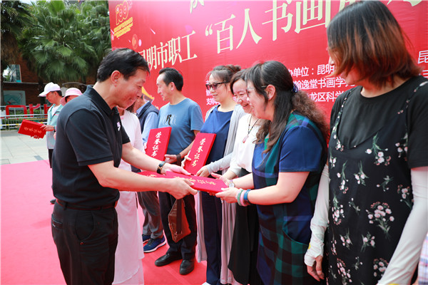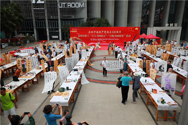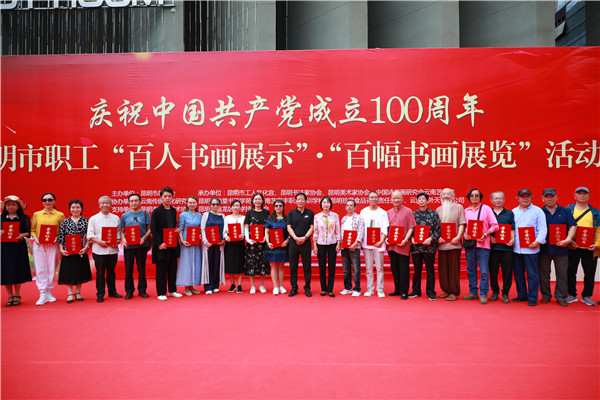 昆明信息港訊 記者勞學(xué)麗 7月13日下午,“春城職工文體嘉年華”系列活動(dòng)——“丹青書(shū)盛世,翰墨頌黨恩”慶祝中國(guó)共產(chǎn)黨成立100周年昆明市職工“百人書(shū)畫(huà)展示”“百幅書(shū)畫(huà)展覽”在工人文化宮隆重舉辦。本次活動(dòng)由昆明市總工會(huì)主辦,昆明市工人文化宮、昆明書(shū)法家協(xié)會(huì)、昆明美術(shù)家協(xié)會(huì)、中國(guó)詩(shī)書(shū)畫(huà)研究會(huì)云南藝術(shù)宮聯(lián)合承辦,云南行知探索體育文旅產(chǎn)業(yè)有限公司策劃運(yùn)營(yíng)。