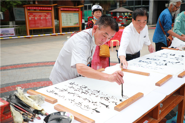 此次活動(dòng)共邀請(qǐng)了全市100名書(shū)畫(huà)家,分別來(lái)自機(jī)關(guān)、企事業(yè)單位職工,有教授,有書(shū)畫(huà)家,也有書(shū)畫(huà)愛(ài)好者。他們用手中的筆、心中的情,以書(shū)言志、以畫(huà)寄情?;蛑黝}鮮明、或立意深遠(yuǎn)、或風(fēng)骨雄健、或奔放激昂,風(fēng)格各異的作品從不同角度抒發(fā)對(duì)黨、對(duì)祖國(guó)、對(duì)家鄉(xiāng)的熱愛(ài),表達(dá)了廣大春城職工書(shū)畫(huà)愛(ài)好者一顆顆赤誠(chéng)、火熱之心,他們用自己特有的方式向中國(guó)共產(chǎn)黨百年華誕獻(xiàn)禮,歌頌偉大祖國(guó)日新月異取得的偉大成就。同時(shí),展現(xiàn)了刻苦鉆研、弘揚(yáng)中國(guó)傳統(tǒng)文化的創(chuàng)作精神,也為廣大市民提供了一場(chǎng)藝術(shù)盛宴。當(dāng)天,“百人書(shū)畫(huà)展示”活動(dòng)在文化宮廣場(chǎng)開(kāi)展的同時(shí),“百幅書(shū)畫(huà)展覽”在文化宮A區(qū)四樓展廳開(kāi)幕。