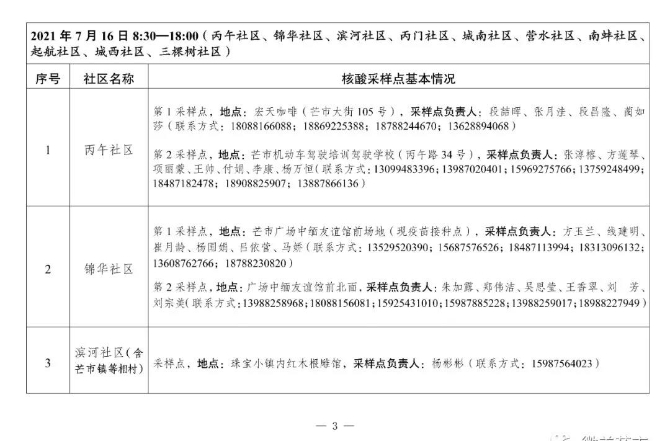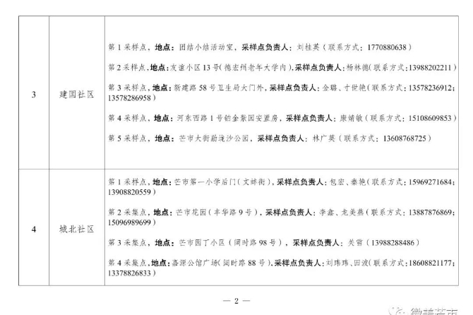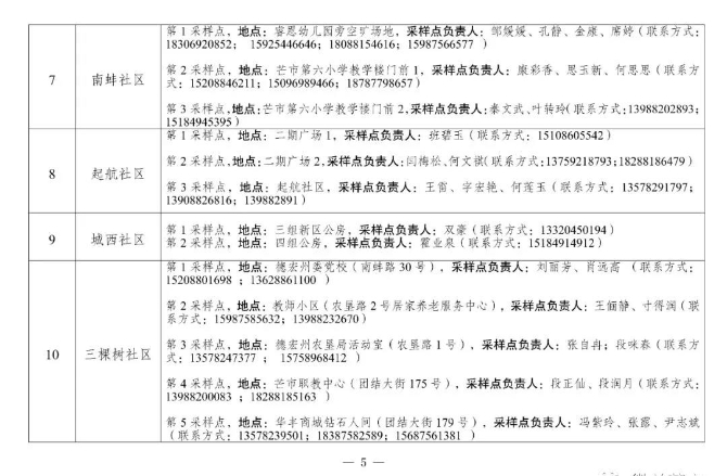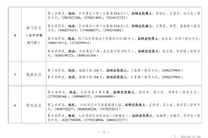 二、采樣地點:以居住地社區(qū)為單位,由社區(qū)負責通知到指定地點采樣。