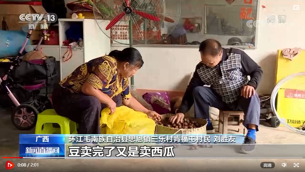 環(huán)江毛南族自治縣思恩鎮(zhèn)三樂村肯福屯村民 劉勝友:蔬菜賣完了又賣豆,豆賣完了又是賣西瓜,西瓜賣完了就賣板栗,板栗賣完了就賣水果,所以說是一年四季都有收入。