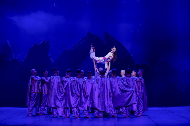 新版舞劇《阿詩瑪》沿用了原版無場次的板塊式結(jié)構(gòu),使舞劇故事情節(jié)連綿有序、一氣呵成,并用黑、綠、灰、紅、金、白、藍(lán)等7個不同色彩的舞段完成戲劇沖突的全部過程,刻畫了不同人物的內(nèi)心世界,把感人肺腑的愛情故事向觀眾娓娓道來。