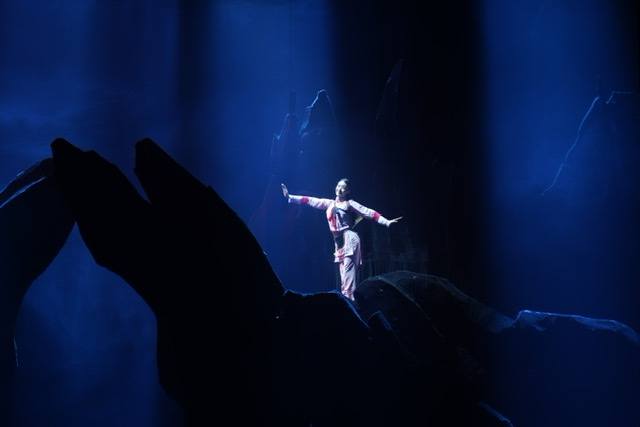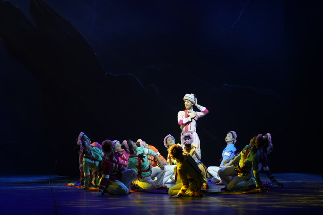 此外,舞劇的最大亮點在于大量運用群舞造景、生情,以群舞隊形、風(fēng)格服飾和動作語匯的豐富變幻,締造出各種惟妙惟肖的自然景物,黑色舞段里的石林與羊群,綠色舞段中的綠苗,白色舞段的白云,金色舞段里的牢籠和藍(lán)色舞段中的洪水......“此版《阿詩瑪》舞劇共用了云南省歌舞劇院一半的演員,而阿詩瑪?shù)陌缪菡咧凶钚〉牟?6歲,除此,25個少數(shù)民族的演員都集中在了此次舞臺上,這也是隱藏的亮點之一?!痹颇鲜「栉鑴≡涸洪L,云南省演藝股份有限公司董事長陶春介紹到。