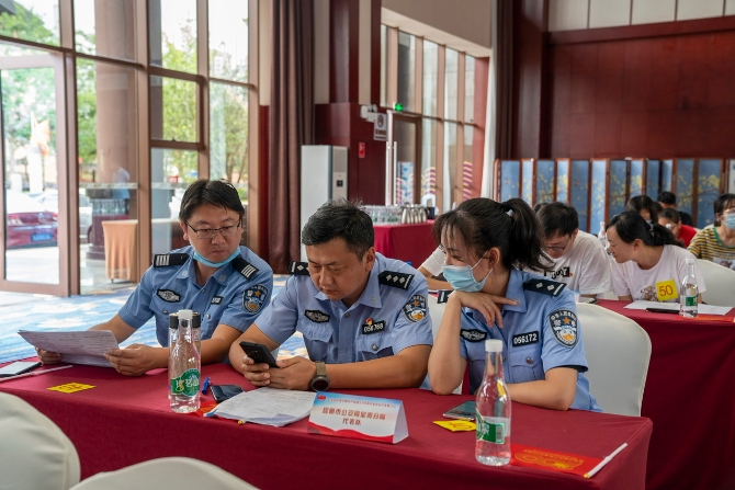 現(xiàn)場(chǎng),每只隊(duì)伍都起了響亮而有特色的隊(duì)名,有“星火燎原”隊(duì)、“初心如炬”隊(duì)、“不忘初心”隊(duì)、“清風(fēng)”隊(duì)等。首先開(kāi)展的是線(xiàn)上預(yù)賽。參賽隊(duì)伍代表齊坐在各自座位上,通過(guò)掃描大屏幕上的二維碼加入線(xiàn)上答題。只見(jiàn)參賽隊(duì)伍每人拿著手機(jī),認(rèn)真讀題、快速答題。據(jù)悉,參賽隊(duì)伍需在30分鐘內(nèi)完成100道選擇題,根據(jù)準(zhǔn)確率和答題時(shí)間長(zhǎng)短,選拔20支隊(duì)伍進(jìn)入決賽。經(jīng)過(guò)激烈比拼,呈貢區(qū)總工會(huì)、呈貢區(qū)發(fā)展和改革局、昆明呈貢信息產(chǎn)業(yè)園區(qū)、白龍?zhí)渡鐓^(qū)、呈貢區(qū)司法局等20支隊(duì)伍進(jìn)入決賽。其中,最快的隊(duì)伍僅用9分鐘就完成了100道選擇題,并取得了99分高分。