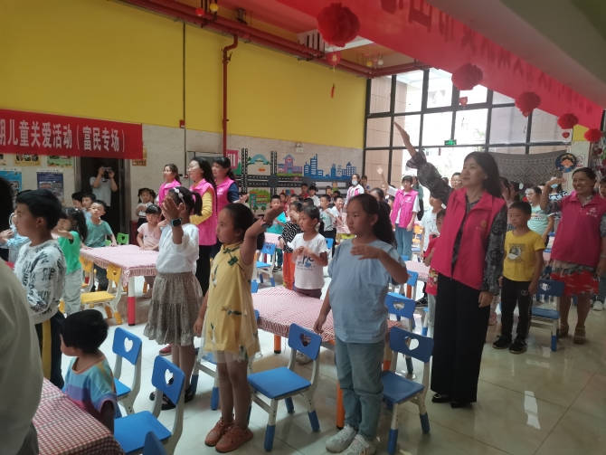 昆明信息港訊 記者李紅鸞 為進一步深化關(guān)愛留守兒童行動,在全社會營造關(guān)心關(guān)愛留守兒童的良好氛圍,改善他們的生活、學(xué)習(xí)環(huán)境,促進他們健康成長,7月15日,昆明市婦聯(lián)到云南世博陽光富民鼎易山水居幼兒園開展“把愛帶回家——昆明市巾幗志愿者關(guān)愛留守兒童”主題活動,把黨和政府的關(guān)愛送到富民縣留守兒童的身邊。
