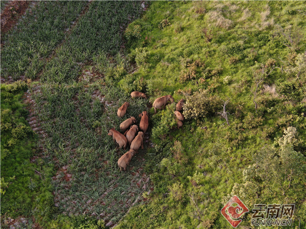 象群持續(xù)石屏縣龍武鎮(zhèn)附近林地內(nèi)活動(dòng)