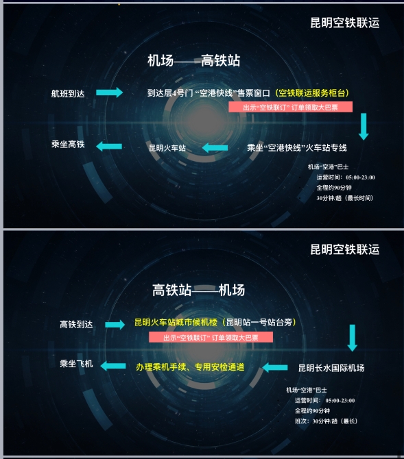 昆明信息港訊 記者上官艷君 李麗朱 為進(jìn)一步打造城市立體交通樞紐,推進(jìn)服務(wù)智慧升級(jí),滿足旅客出行需求,云南鐵路和民航聯(lián)合推出以昆明站、昆明南站和昆明長(zhǎng)水國(guó)際機(jī)場(chǎng)為核心樞紐的空鐵聯(lián)運(yùn)產(chǎn)品,并于7月16日正式上線鐵路12306及東航官網(wǎng)APP,標(biāo)志著空鐵聯(lián)運(yùn)模式首次實(shí)現(xiàn)線上線下同步服務(wù)。