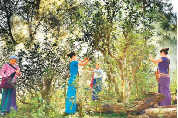 景邁山當(dāng)?shù)亓窒路N植的古茶林。楊麗仙/攝 人民日報(bào)海外版