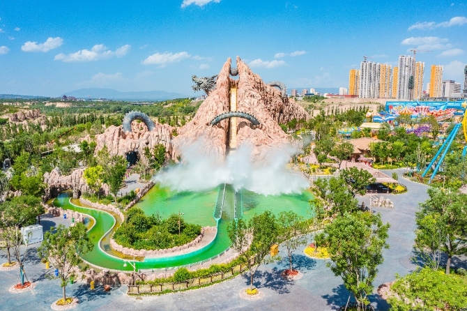 此外,飛馳、攀升、扭轉(zhuǎn)的大型懸掛式過山車《勇闖鹿族》,以及高達(dá)26米的大型高空水上漂流項(xiàng)目《昆侖探秘》等多個(gè)室外主題項(xiàng)目,也讓人們對正式開園后的太原方特越發(fā)期待。