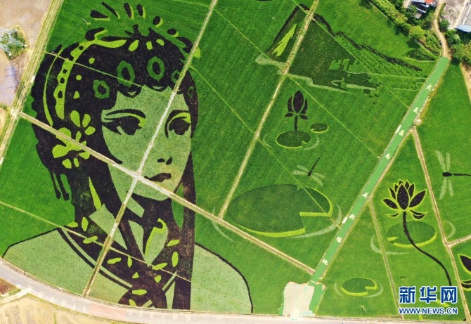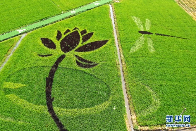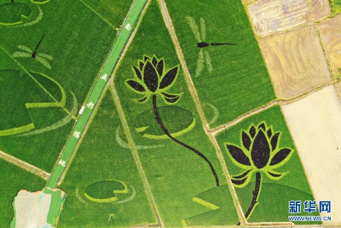 這是7月16日拍攝的彩色稻田畫(無(wú)人機(jī)照片) 新華社記者 萬(wàn)象 攝