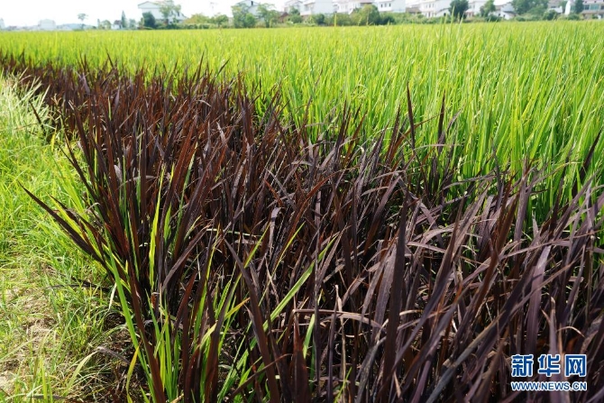 這是7月16日拍攝的江西省南昌縣黃馬鄉(xiāng)郭埠村村民種植的彩色稻 新華社記者 萬(wàn)象 攝