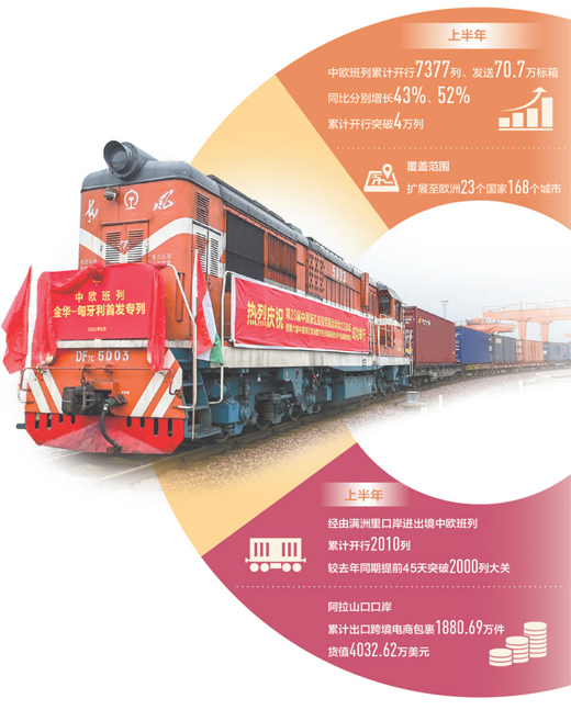 作為跨大洲、跨國別、長距離、大運(yùn)量的運(yùn)輸方式,中歐班列的覆蓋范圍擴(kuò)展至歐洲23個國家168個城市,已成為沿線國家廣泛認(rèn)同的國際公共產(chǎn)品。今年上半年,中歐班列開行更是實(shí)現(xiàn)了數(shù)量質(zhì)量雙提升。