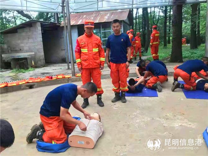 駐訓期間,支隊邀請昆明市紅十字會5名教官來隊現(xiàn)場教學,采取以講為輔、以練為主、講練結(jié)合、演練配合的互動教學模式,從心肺復蘇、創(chuàng)傷救護、常見急癥等三個方面進行專業(yè)培訓。