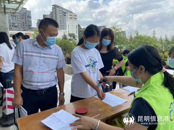 7月21日10點左右,在昆八中未成年人臨時接種點外,準備接種疫苗的學生在監(jiān)護人陪同下正有序地排隊。測量體溫、核實學生身份證、登記學生家長(監(jiān)護人)身份證號碼、測量血壓、接種疫苗……學生們按流程進行接種。